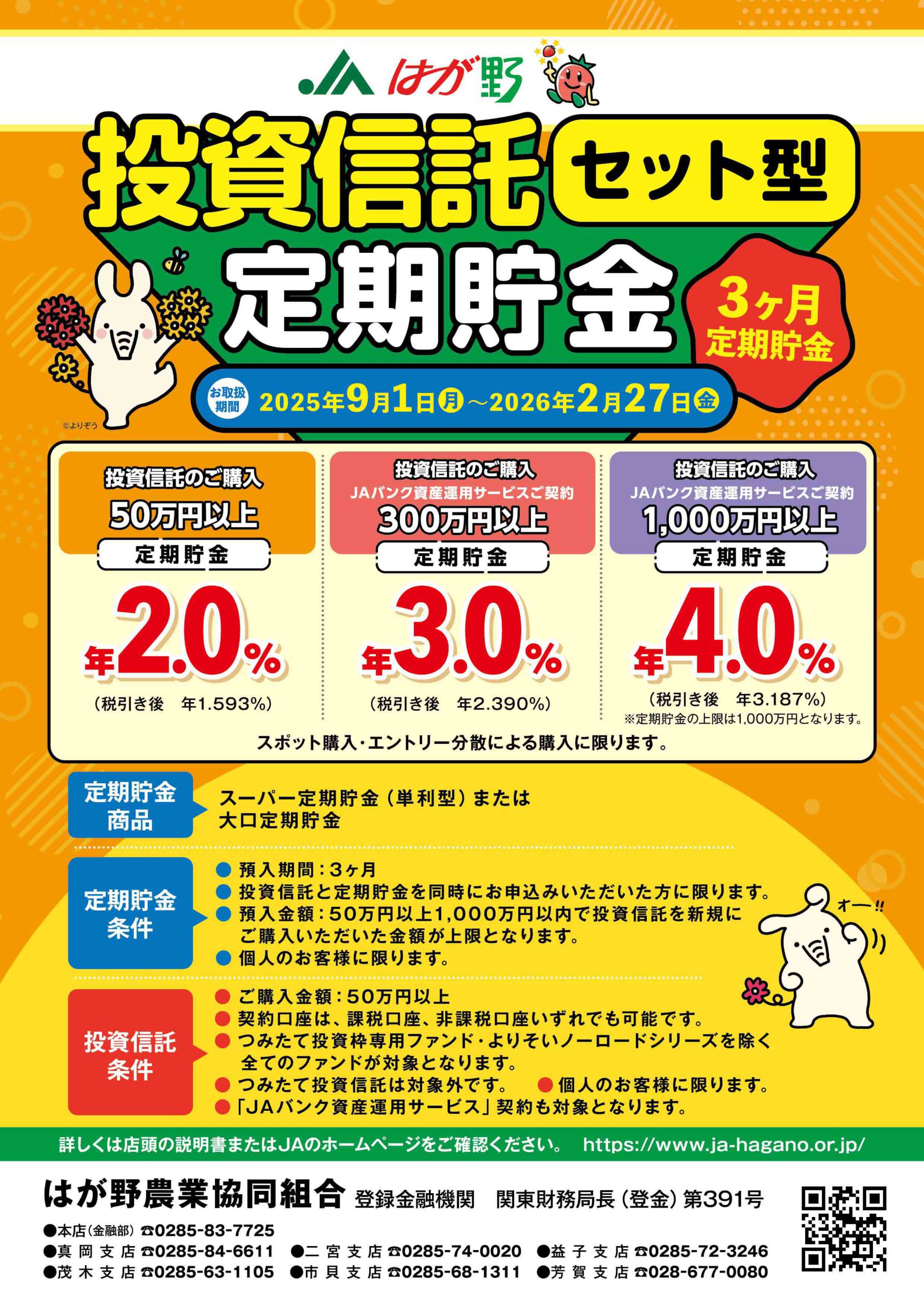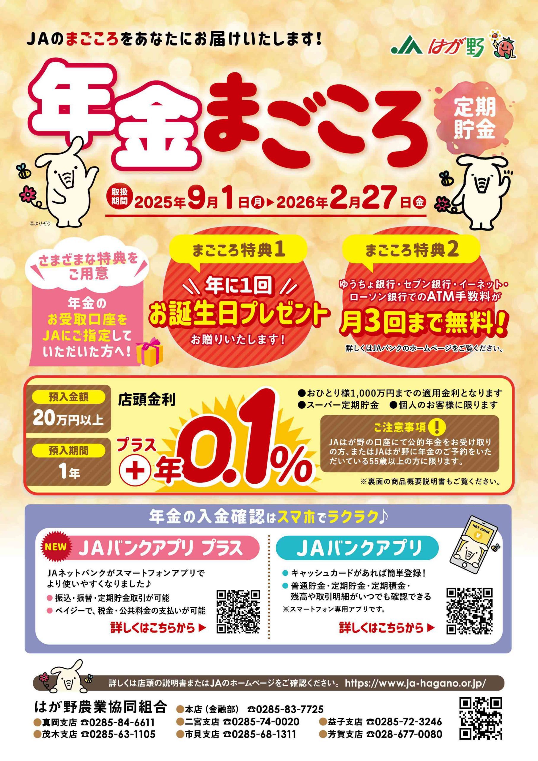 キャンペーン定期貯金のお知らせ 実施中のキャンペーン定期貯金はコチラ! 年金まごころ定期貯金R7.9.1~R8.2.27 退職金専用定期貯金R7.9.1~R8.2.27 相続定期貯金R7.9.1~R8.2.27 投資信託セット型定期貯金R7.9.1~R8.2.27 満期共済金専用定期貯金R7.9.1~R8.2.27