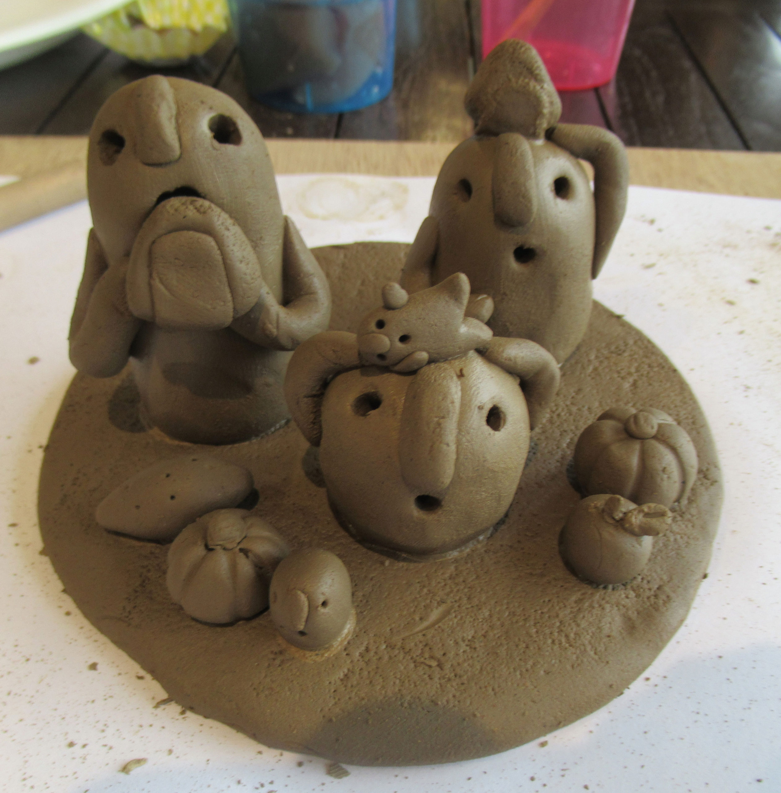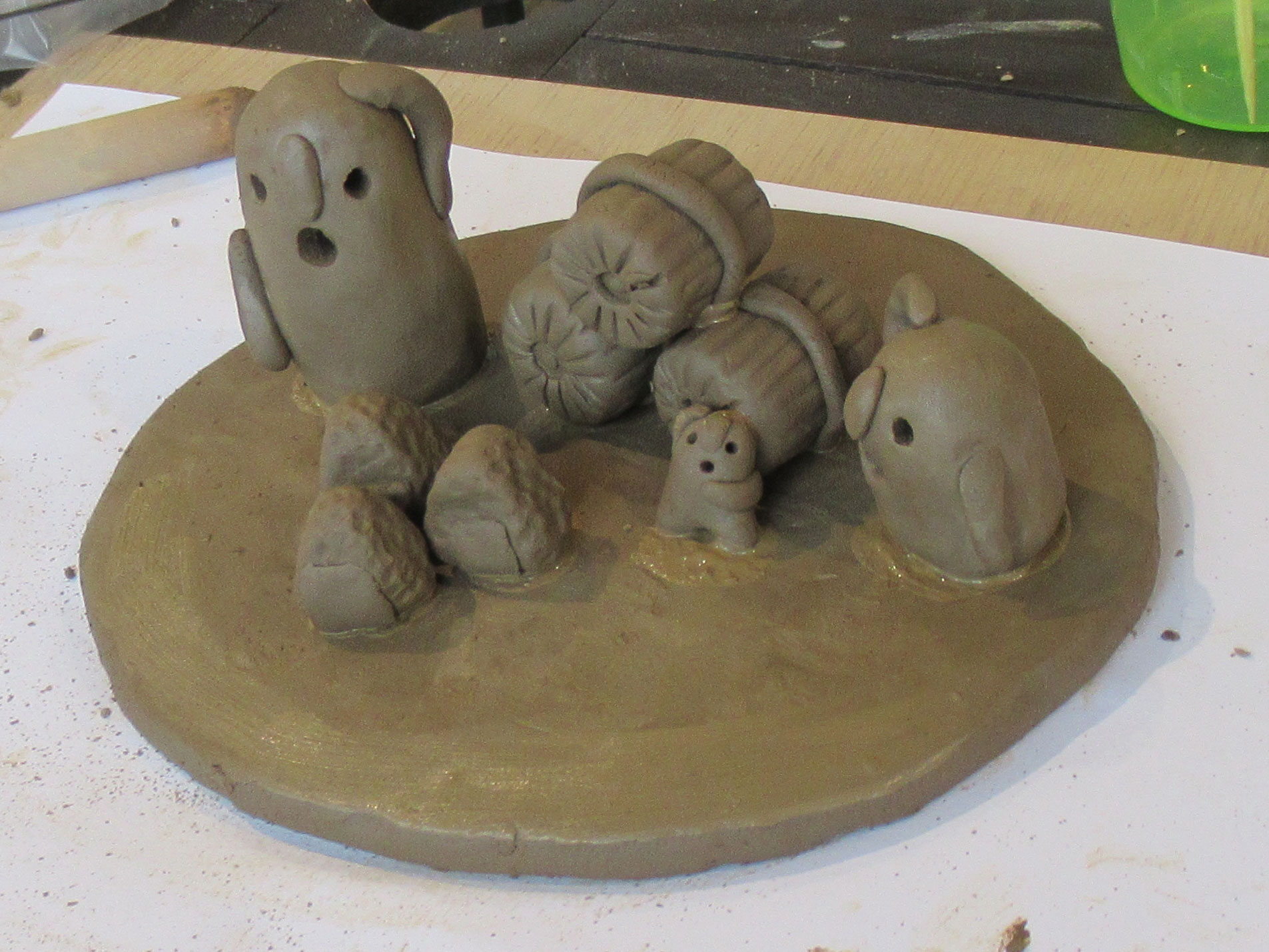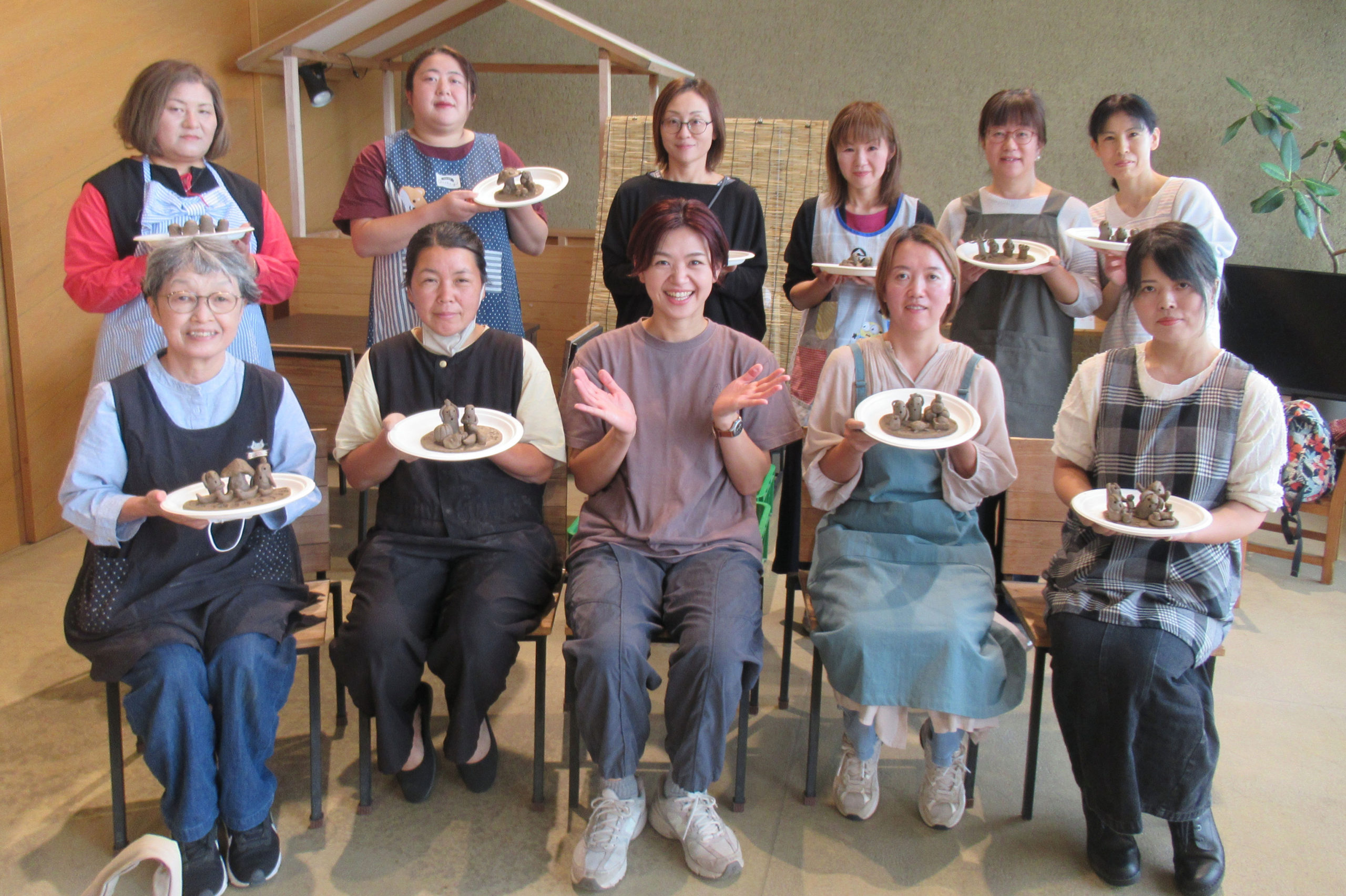 ●令和7年10月15日(水)、なの花倶楽部は「はにわ作り教室とランチ会」を開催しました。つぶらな瞳におちょぼ口の「はにわ君」はとても表情豊かです。実りの秋として一緒に並ぶ野菜や果物、米俵もかわいいですね!会話も弾み、交流を深められた”収穫の秋”の日でした。