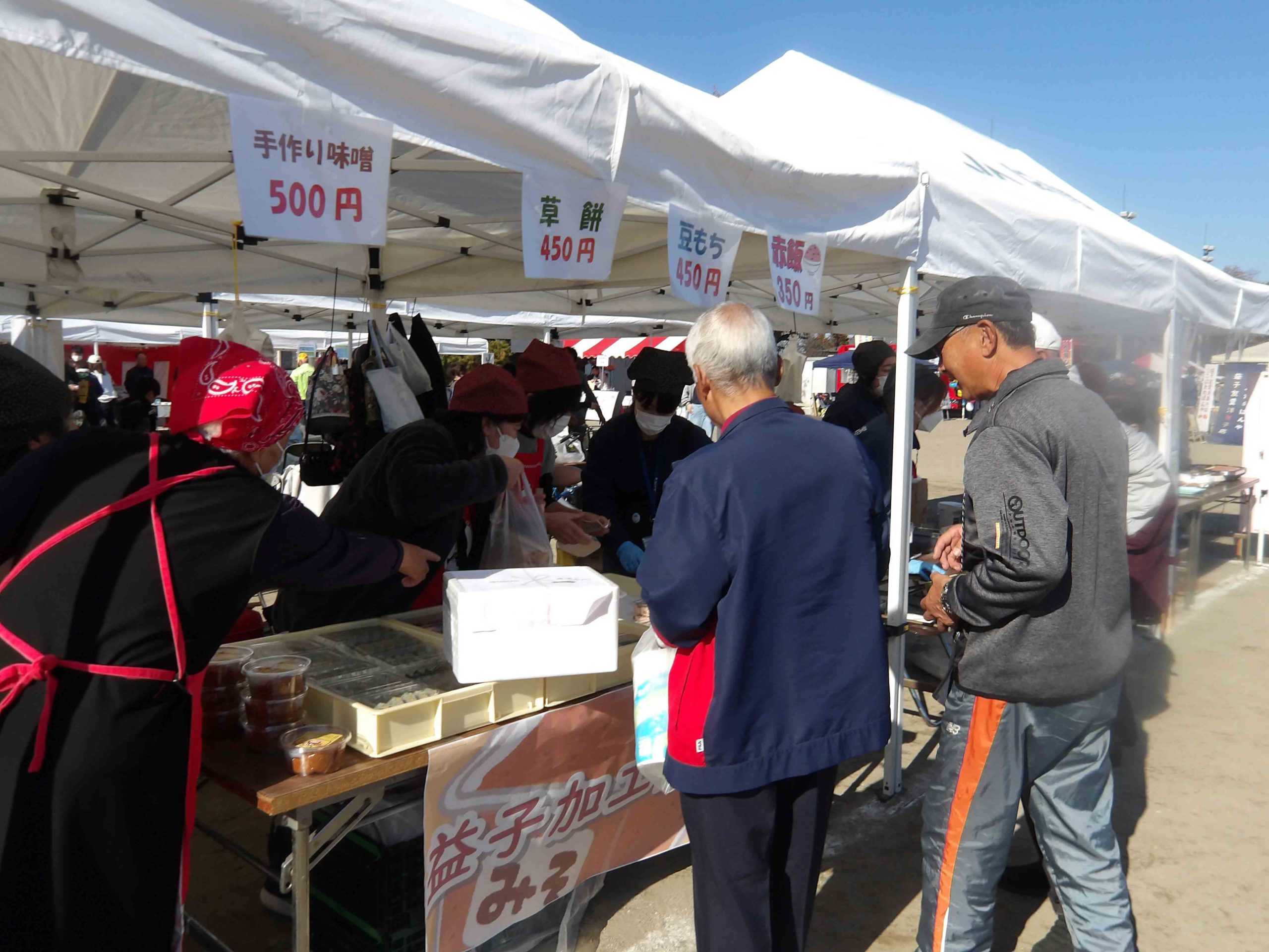 ●令和6年11月24日(日)、市貝地区女性会はJAまつりに参加しました。地元市貝産もち米を使った愛情たっぷりの「五目おこわ」の販売、フリーマーケットの開催、会員の皆さんへのプレゼント配布を行いました。多くの会員さんのご来場ありがとうございました。