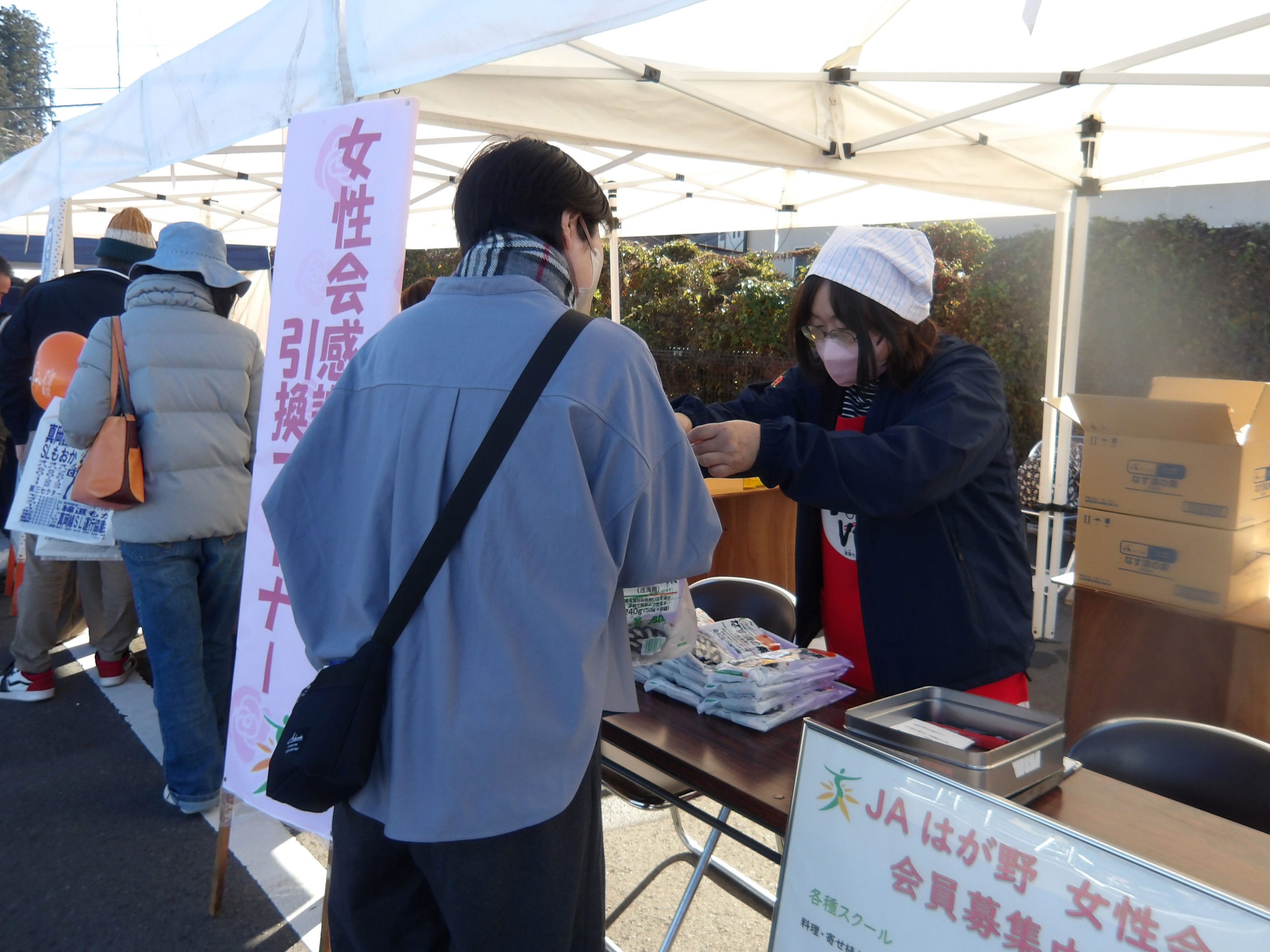 ●令和7年11月23日(祝・日)、真岡地区女性会はJAまつりに参加しました。毎年人気の赤飯は早々に完売し会員へのプレゼントも好評。JA共済地域貢献活動の一環でJA共済アンバサダーのPRもあり会場は賑わいました。