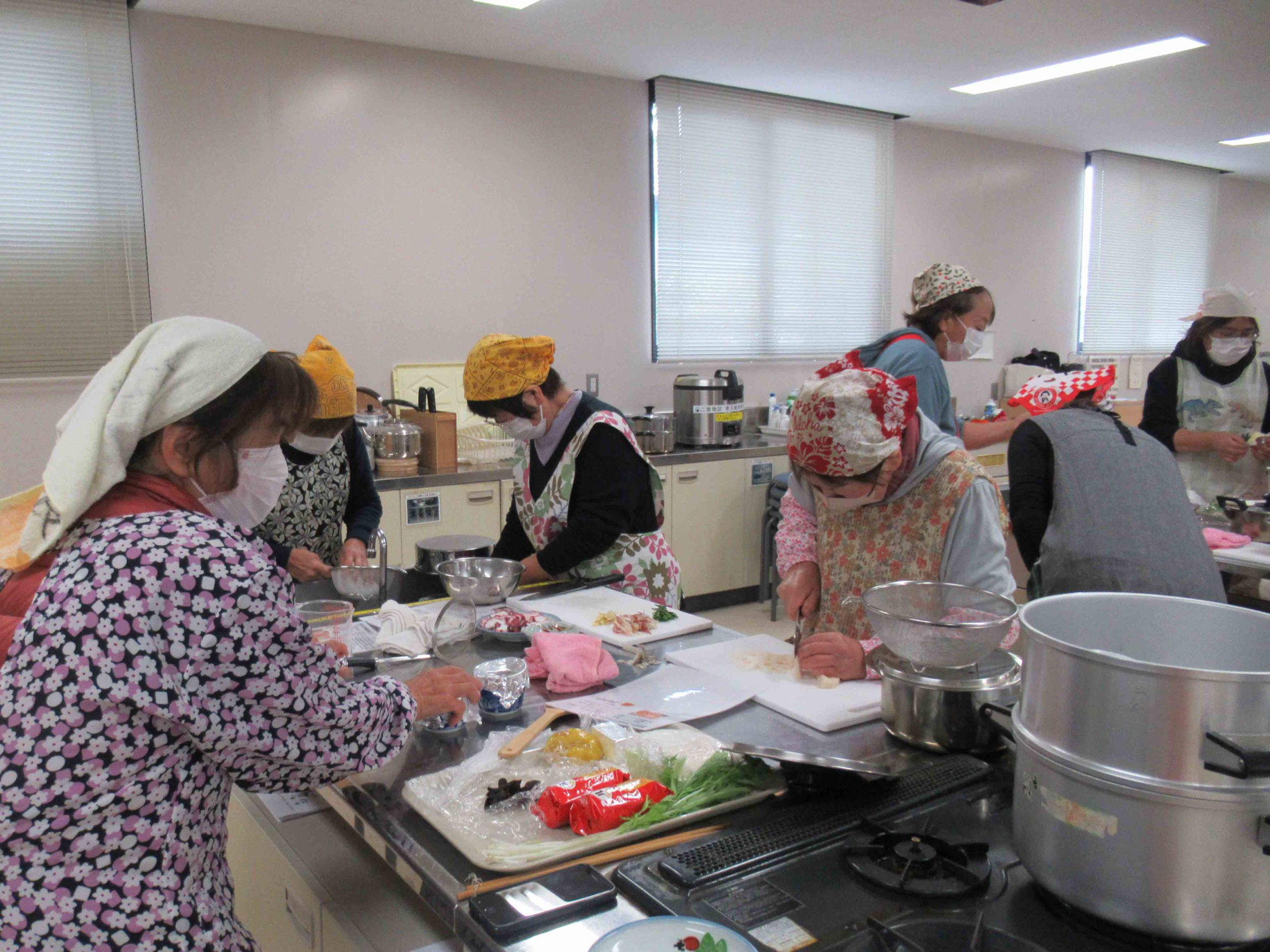 ●令和6年11月29日(金)、二宮地区女性会は料理教室を開催しました。調理も手際よく、パッパッと出来上がり!食事をしながらの情報交換?も有意義なものになりました。