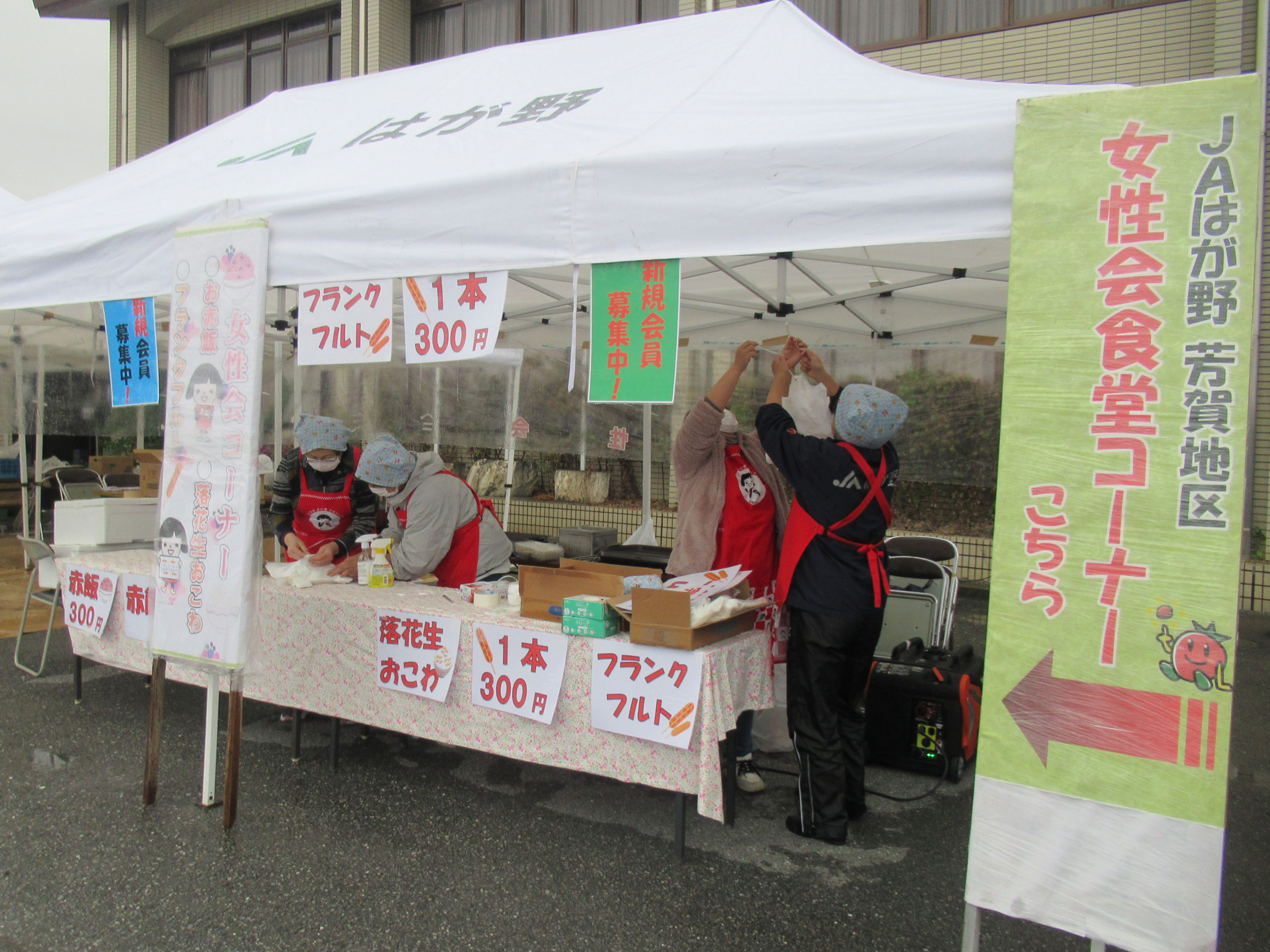 ●令和7年11月9日(日)、芳賀地区女性会はJAまつりに参加しました。あいにくの雨ではありましたが、用意した赤飯やフランクフルトなどは完売となりました。