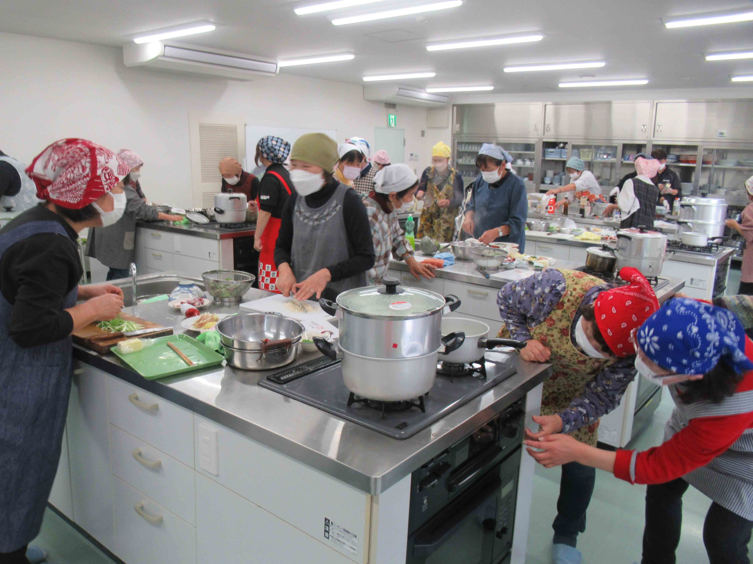 ●令和7年11月13日(木)、真岡地区女性会は「お節のアレンジ料理教室」を開催しました。午前と午後に分かれて69名の参加者が手際よく調理しました。調理台を囲んでの会話も弾み、おいしくいただきました。